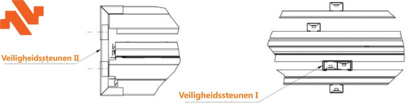 - Verwijder de veiligheidssteunen II. Deze zijn vastgeschroefd in de hoekstukken