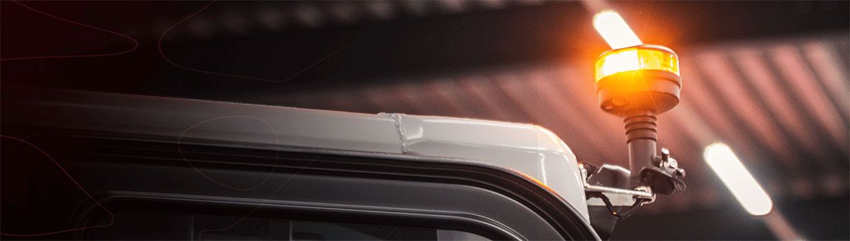 Een zwaailamp is een compacte, ronde of platte lamp die op één punt van het voertuig wordt gemonteerd — vaak op het dak, op de cabine of op een beugel. Denk aan zo’n karakteristiek oranje knipperend licht.