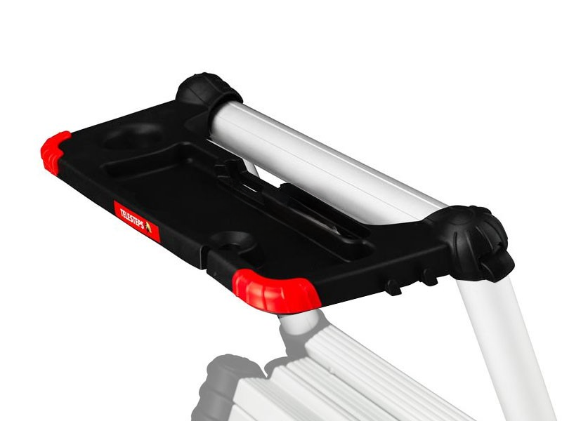 Een ander praktisch accessoire is het gereedschapsbord van Telesteps. Dit bevestig je eenvoudig op een van de telescopische combiladders van dit Zweedse kwaliteitsmerk. Het bakje biedt ruimte voor een grijpvoorraad aan schroeven, spijkers of klein gereedschap, zodat je efficiënt kunt werken zonder steeds de ladder af te hoeven.