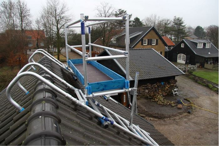 Een daksteiger is een speciale vorm van steigerbouw, ontworpen om veilig te kunnen werken op hellende daken. Met een daksteiger kun je stabiel en verantwoord werkzaamheden uitvoeren op hoogte, bijvoorbeeld bij het repareren van dakpannen, het plaatsen van dakramen of het onderhouden van een schoorsteen. Dankzij de stevige constructie en antislipwerkvloeren biedt een daksteiger maximale veiligheid en comfort tijdens het werken op schuine oppervlakken.