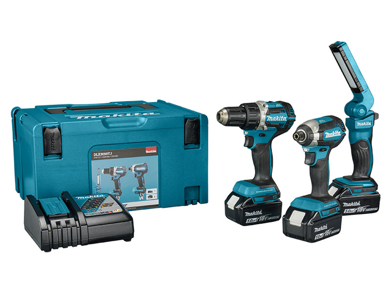 Makita 18V combiset 3-delig 3x 5.0Ah Mbox DLX3090TJ