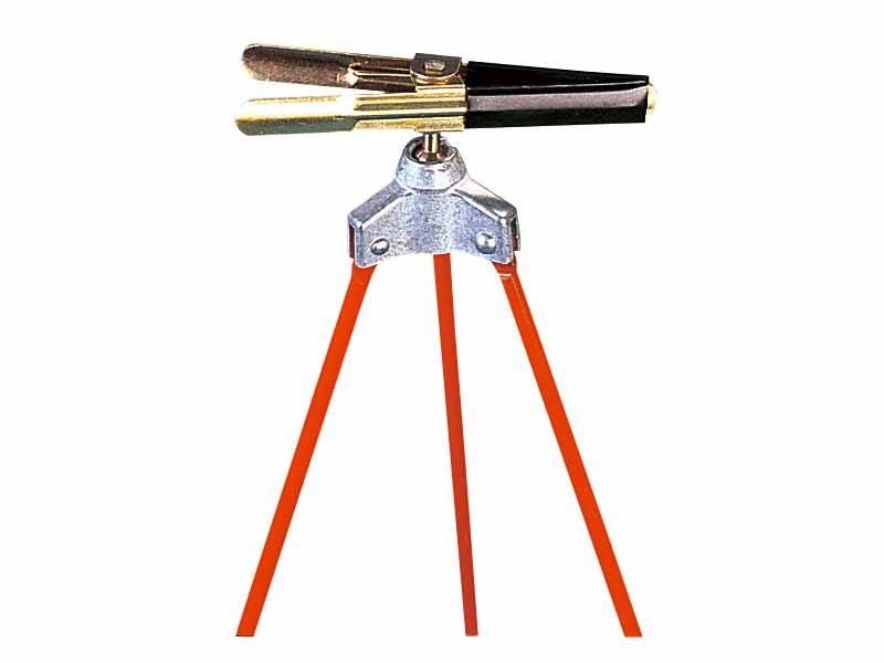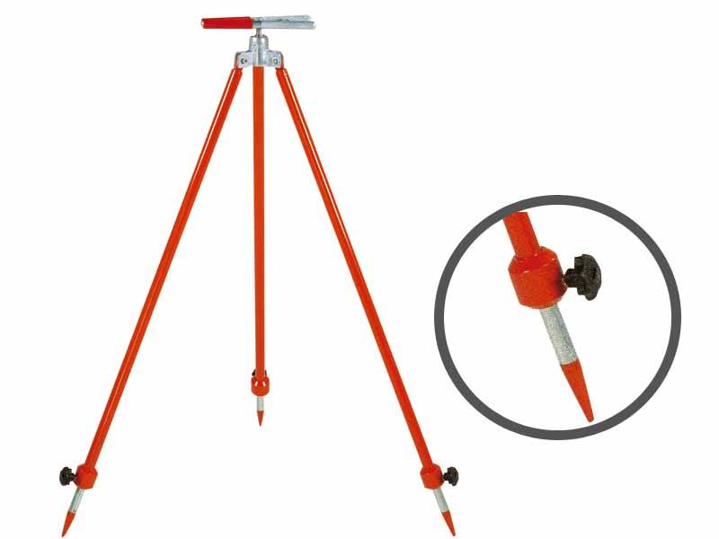 Wanneer de bodem te hard is om een jalonstok te plaatsen, biedt een jalonstatief uitkomst. Dit statief is voorzien van drie poten en een stevige veerklem, zodat de jalon in elke ondergrond stabiel en recht kan worden neergezet.