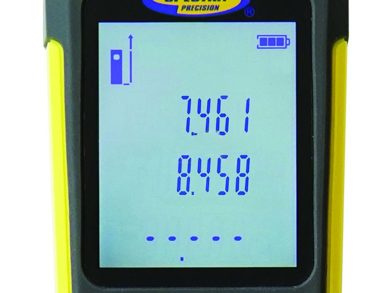 Deze afstandsmeter is een ware uitblinker als het gaat om bedieningsgemak. Zo is het grote LCD-scherm voorzien van achtergrondverlichting, zodat je te allen tijde goed zicht hebt op de meetresultaten. De display geeft niet alleen de laatste drie metingen weer, maar nog veel meer informatie. Zo kun je onder andere aflezen of de laser is geactiveerd, welke functie je momenteel gebruikt en of de batterijen vol, halfvol of bijna leeg zijn.