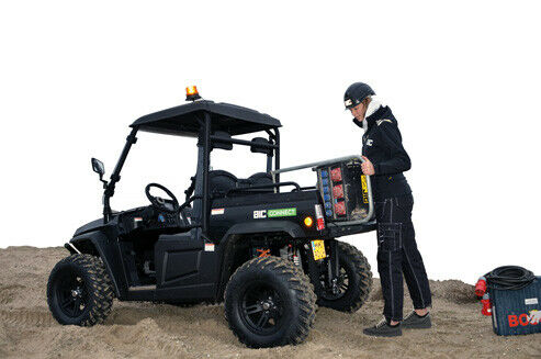 Elektrisch verplaatsen op de bouwplaats was nog nooit zo eenvoudig. De AIC bouwbuggy rijdt soepel en efficiënt dankzij het 48 volt elektrisch systeem. Met regeneratief remmen, een vergrendelbaar differentieel en professionele gasvering voelt hij zich thuis op ieder terrein. De ruime, kantelbare laadbak met laadklep maakt het vervoeren van materieel en gereedschap gemakkelijk. Van kabels en haspels tot zwerfkasten en elektrisch gereedschap: alles kan mee. Met de trekhaak vervoer je bovendien lichte aanhangwagens zonder moeite.