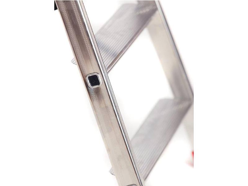 Uiterst veilig Het spreekt voor zich dat deze trap uiterst veilig is. Zo is de Alu-Top uitgerust met grote veiligheidsvoeten, voor extra stabiliteit. Verder is het scharnierende platform voorzien van een veiligheidspal. En omdat de speciale treden gegroefd zijn, heb je een optimale grip. Je zult dus niet snel uitglijden.
