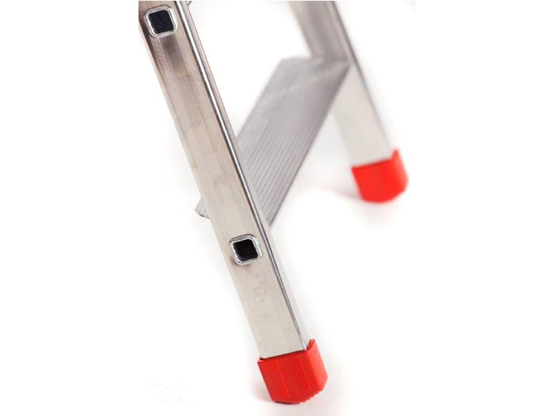 Zware kwaliteit Deze aluminium trap is van hoge kwaliteit. Zo is deze trap voorzien vangefelste treden aan de zijbomen. De gesporte treden hebben een diepte van 85 mm. Extra diep, dus ideaal voor grotere voeten. Verder zijn de scharnieren vervaardigd uit hoogwaardig aluminium.