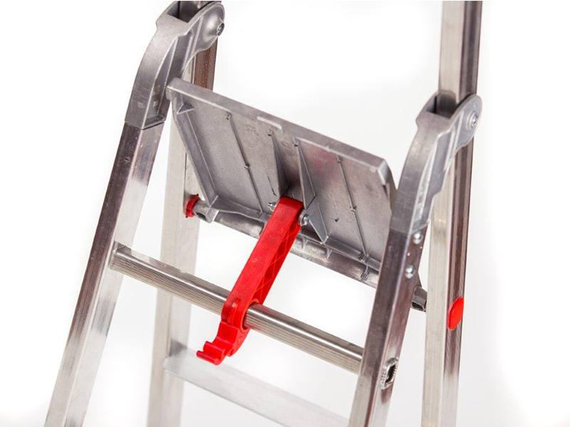 Zeer handig Je kunt aan dit trapje merken dat over alles is nagedacht. Zo is het aan de bovenkant uitgerust met een gereedschapsbakje. Ideaal voor je schroeven en spijkers. En dat niet alleen, onder dit bakje bevindt zich ook nog een emmerhaak. Deze maakt de Alu-Top ideaal voor schilders of glazenwassers! En omdat dit bakje is voorzien van een uitsparing, is deze trap gemakkelijk hanteerbaar.