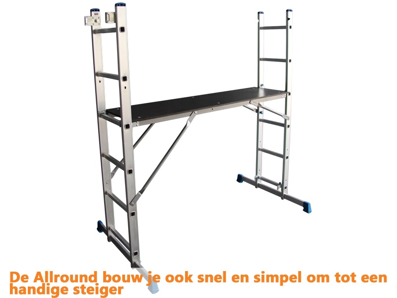 Zoek je een steiger, een ladder en een dubbele trap? Dan ben je met de aanschaf van dit product in één keer klaar! De Allround combineert namelijk alle drie in één handzame alleskunner.