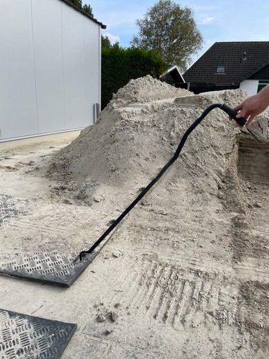 Uiteraard bestaan er nog veel meer toepassingsgebieden voor deze multifunctionele trekstang. Zo is deze bovendien uitermate geschikt om er rijplaten mee te verslepen. Werd hiervoor tot voor kort een putdekselhaak met gebogen punt gebruikt, nu kun je met behulp van deze ergonomisch ontworpen rijplaattrekker de rijplaten rechtopstaand over de grond verslepen.