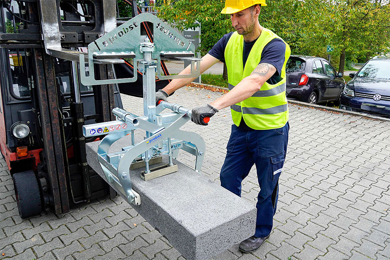 Met een draagvermogen tot 600 kilogram is deze bandenklem perfect geschikt voor zware klussen. Of je nu werkt met grote trottoirbanden, traptreden of andere zware elementen, de Probst TSZ UNI-ET kan het allemaal aan. Daarnaast is hij speciaal ontworpen met vorksloffen, zodat je hem eenvoudig aan een heftruck kunt bevestigen. Het unieke ontwerp maakt het mogelijk om de klem 90 graden te draaien, terwijl deze aan de heftrucklepels hangt. Ideaal voor het efficiënt stapelen en verplaatsen van materialen.