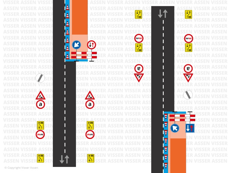 - Complete bordenwagen voor eenzijdige wegafzettingen volgens CROW 96B-18 en 96B-19.