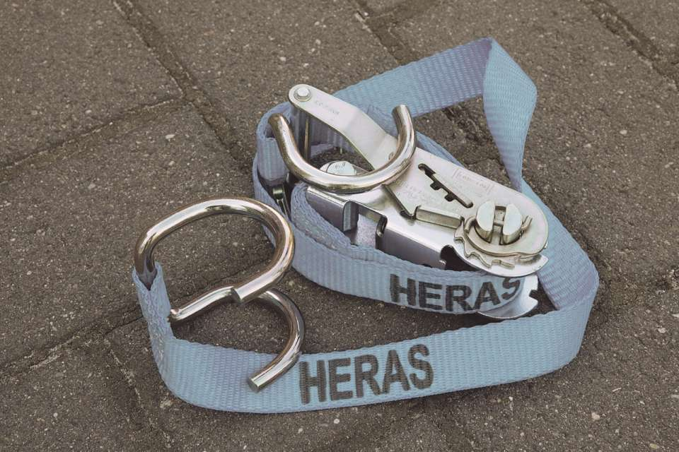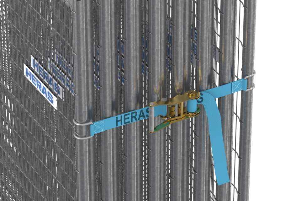 De meegeleverde spanband is speciaal door Heras ontworpen om het transporteren en het opslaan van grote partijen bouwhekken te bespoedigen. Je haalt deze sjorband door de openingen van de bouwhekken en trekt de band met behulp van de ratel weer strak. Simpel en doeltreffend!