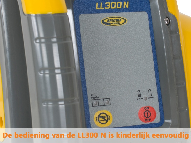 - Werkbereik tot 500 meter met ontvanger maakt de Spectra LL300N inzetbaar op grote bouwplaatsen.