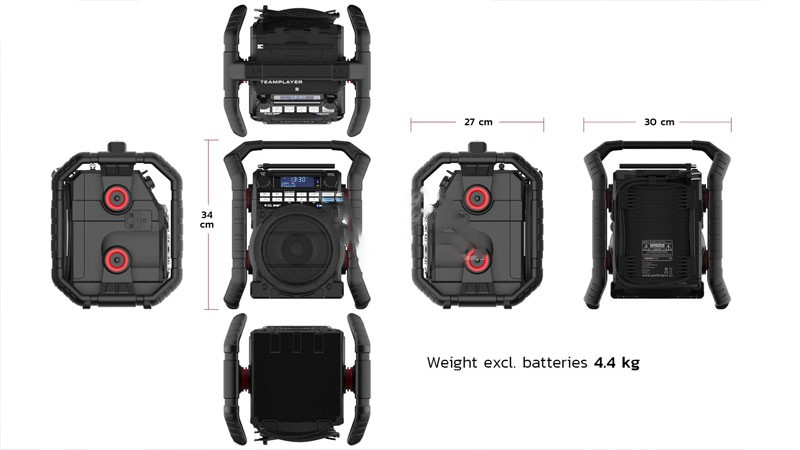 De TeamPlayer is uitgerust met tal van snufjes die jou het werken én het relaxen net even wat aangenamer maken. Zo is deze bouwradio niet alleen voorzien van een timer-functie, maar ook van een wekkerfunctie. Zo kom je dus nooit meer te laat op de klus! Vervolgens kun je de radio vanuit huis meenemen naar het werk, want deze bouwradio kun je namelijk uitbreiden met een set oplaadbare accu's. Ook handig is dat de TeamPlayer beschikt over een USB-stroomuitgang. Dit betekent dat je hiermee gemakkelijk je smartphone kunt opladen. Ten slotte kun je je smartphone niet alleen via Bluetooth met deze bouwradio verbinden, maar ook middels de gewone aux-ingang.