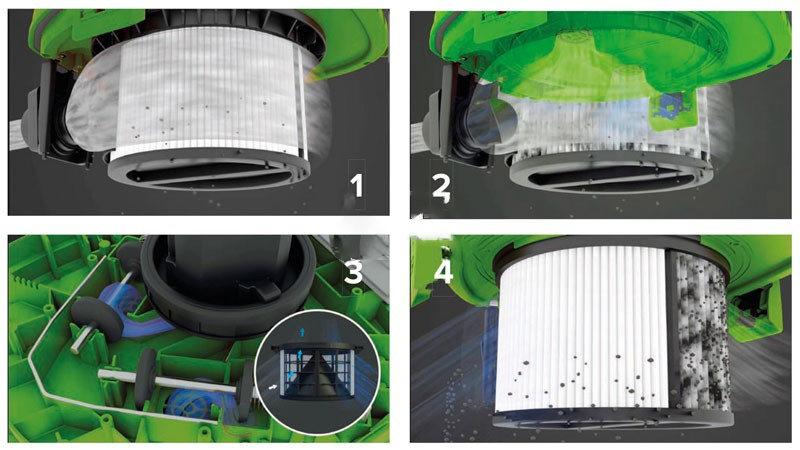 De P35 WDM van DiBO is uitgerust met gepatenteerde techniek. Zoals bijvoorbeeld het unieke filterreinigingssysteem. Dit systeem zorgt voor een gemakkelijke reiniging van het filter door simpelweg de luchtstroom om te keren. Waar ook over is nagedacht, is het zuigkrachtbewakingssysteem. Dit is een zowel akoestisch als visueel signaal dat de gebruiker waarschuwt wanneer het vereiste luchtdebiet niet wordt bereikt. Dit voorkomt een verhoogde stofvervuiling in de lucht. Handig is bovendien dat de geïntegreerde vergrendelingsremmen voorkomen dat de stofzuiger kan wegrollen. Eveneens handig is de geïntegreerde gereedschapssleutel, waarmee je het filter in een handomdraai kunt vervangen.