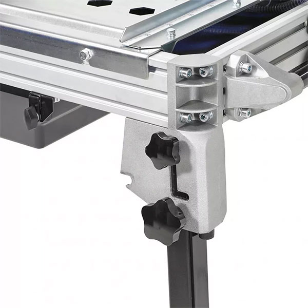 Met de uitneembare waterbak is schoonmaken eenvoudig en snel gedaan. Het aluminium onderstel met inklapbare poten zorgt voor een stevige basis en maakt de machine makkelijk te vervoeren. Dankzij de transportwielen en het compacte ontwerp kun je de P-3510 eenvoudig naar elke locatie verplaatsen. En met de kettingaandrijving en het robuuste handwiel heb je volledige controle over de zaagbewegingen.