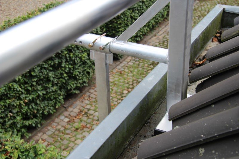 Deze set dakrandbeveiliging voor schuine daken is een doorontwikkelde variant op de sets dakrandbeveiliging voor een plat dak. Bijzonder aan deze sets dakrandbeveiliging voor schuine daken is dat een zware ballast in de vorm van betonblokken gelukkig achterwege heeft kunnen blijven. Dit systeem kun je namelijk gemakkelijk en snel in de dakgoot plaatsen, waarbij de telescopische armen van de randbeveiliging op de gevel van het pand blijven rusten. Handig is eveneens dat dit systeem ook is te gebruiken op vlakke daken met een kleine opstaande rand.