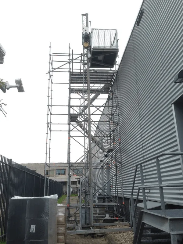 De De Jong AT40 tandheugellift is een krachtige en betrouwbare liftoplossing voor bouwplaatsen. Met een hefvermogen van 400 kg en een maximale masthoogte van 40 meter bij verankering is deze lift geschikt voor zware materialen. De mogelijkheid om de lift vrijstaand tot 9 meter te gebruiken, maakt hem direct inzetbaar in de eerste bouwfase. De eenvoudige handlierbediening en robuuste stabilisatiebalken zorgen voor optimale stabiliteit en gebruiksgemak. Het platform is volledig afgeschermd en uitgerust met een instap- en uitstapklep voor extra veiligheid. De centrifugaalrem voorkomt ongewenste versnelling, terwijl de 400V voedingsspanning en 3 kW motor zorgen voor krachtige prestaties. Een efficiënte en veilige keuze voor professioneel verticaal transport.