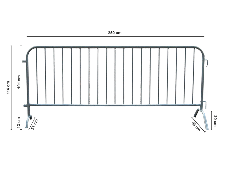Dit dranghek is een ideale afscheiding om grote groepen mensen in bedwang te houden. De (dubbele) zelfvergrendelende haak zorgt niet alleen voor eenvoudige montage, maar ook voor een strakke hekwerklijn. Dankzij de maximale spijlafstand (100 mm) is dit hek dier- en kindvriendelijk. Het hogere gewicht van het dranghek zorgt ervoor dat het hekwerk beter bestand is tegen de krachten van de groepen mensen die er mee in bedwang worden gehouden. Daarnaast is dit dranghek ook robuuster dan de lichtere varianten door de dikkere buisdiameter.