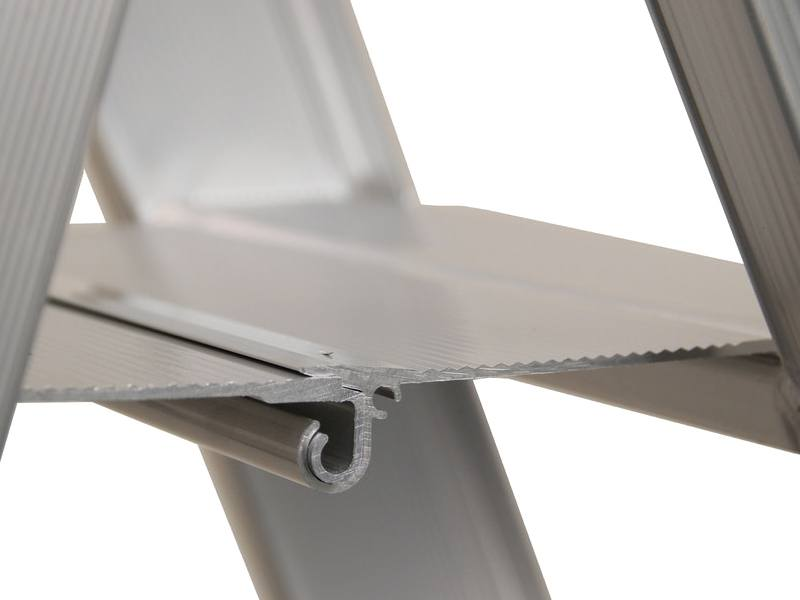 Als het op gebruiksgemak aankomt, is deze trap de absolute topper. Zijn grootste troef is natuurlijk de speciale polyester coatinglaag. Dankzij deze vernislaag blijft de trap zijn professionele uitstraling behouden. Bovendien zal het aluminium hiermee niet afgeven op je kleding of handen. Daarnaast is deze professionele trap uitgevoerd met een extra gelaste versteviging bij de voeten. Deze geeft de dubbele trap zijn robuustheid en veiligheid.