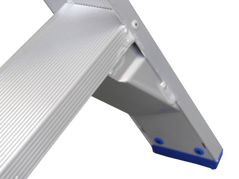 Ook als het op gebruiksgemak aankomt, is deze trapladder van absolute wereldklasse. Het grootste voordeel is uiteraard de speciale polyester coatinglaag. Dankzij deze vernislaag blijft de trap zijn professionele uitstraling behouden. Als extra pluspunt zal het aluminium hierdoor geen sporen achterlaten op je kleding of handen. Ten slotte is deze professionele trapladder uitgevoerd met een extra gelaste versteviging bij de voeten. Deze geeft de dubbele trap zijn robuustheid en veiligheid.