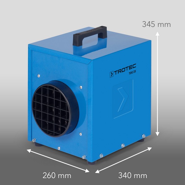De TDE 25 is een compacte elektrische heater van Trotec. Deze krachtpatser staat al 25 jaar bekend als de go-to oplossing voor professionele gebruikers die betrouwbare en zuivere warmte nodig hebben op bouwplaatsen, werkplaatsen, bouwcontainers en diverse andere ruimten.