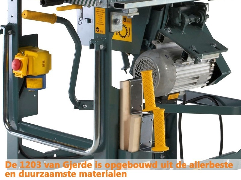 De bouwzagen van Gjerde zijn wereldwijd een begrip op menig bouwplaats. Waar de 1603-NL van deze Noorse fabrikant het paradepaardje is, is de 1203 de bouwzaag die bij uitstek geschikt is voor alle locaties waar geen krachtstroom aanwezig is. Deze zaagtafel werkt namelijk gewoon op 230 volt, dus ideaal tijdens nieuwbouw en verbouwingen.