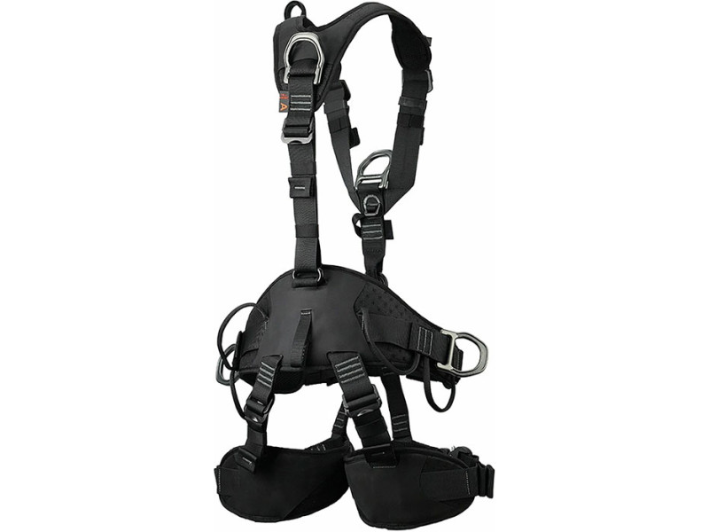 - Twee laterale aluminium D-ringen voor werkpositionering en een ventrale D-ring geschikt voor afdaalapparaten.