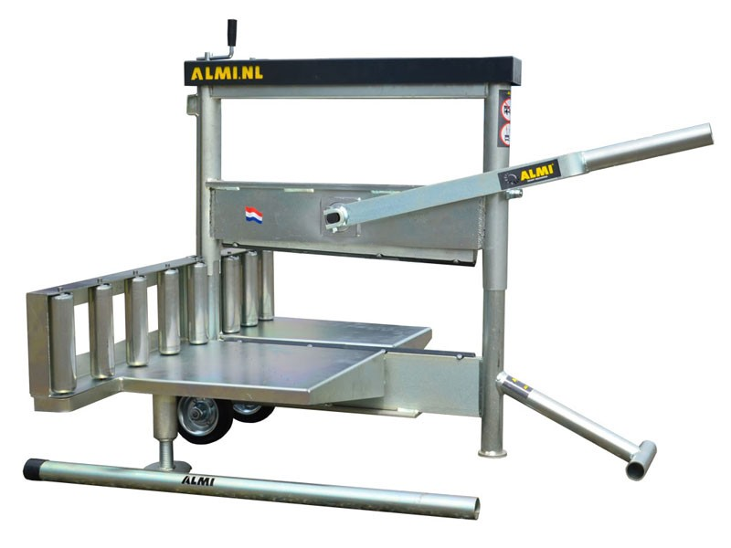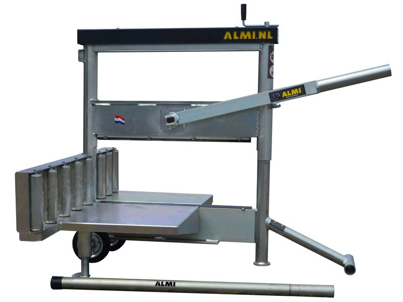 Ondanks het feit dat de AL65KS EASY en zware jongen is, is deze kalkzandsteenknipper gemakkelijk te bedienen. De kniphoogte stel je bijvoorbeeld razendsnel in met behulp van de enkele spindel. De twee extra grote draagplaten zet je vast met behulp van de verstelbare steunpoten en je legt de kalkzandsteen of de trottoirband op deze platen. Vervolgens haal je de verlengbare hefboom over en je blok of band is op maat geknipt.
