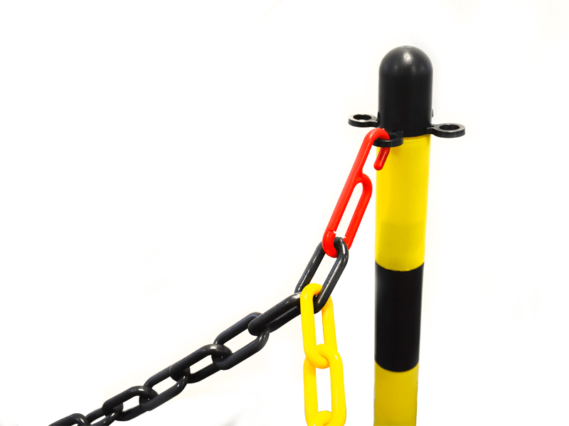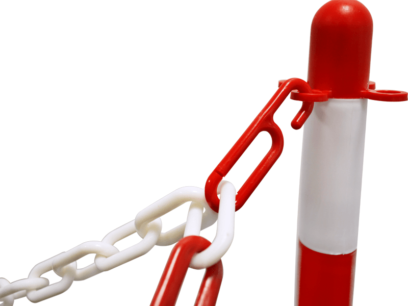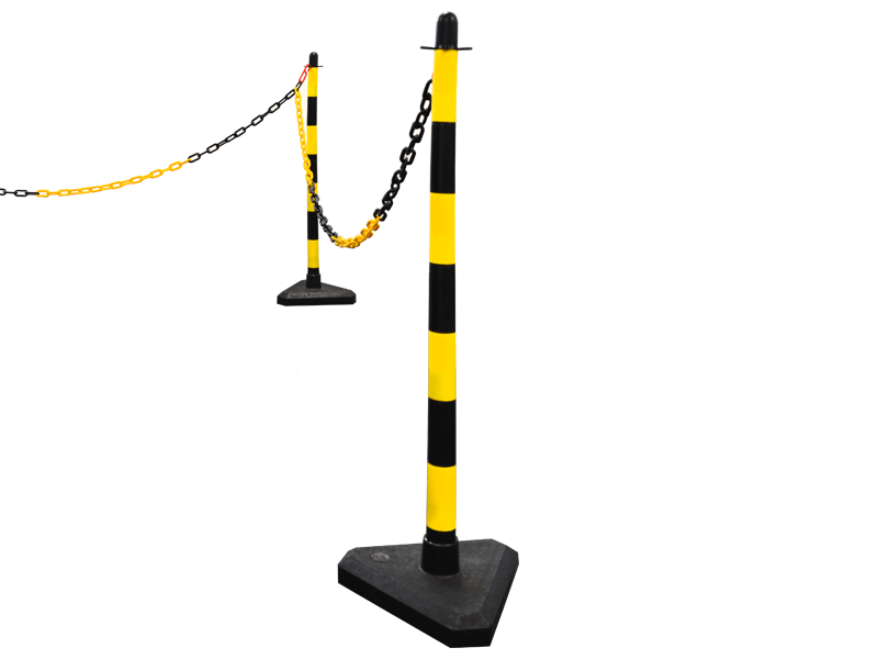 Afzetpaal van kunststof in rood-witte of zwart-gele kleurstelling. Ideaal voor gebruik in combinatie met een ketting. Een kunststof ketting is leverbaar in geel/zwart ofrood/wit met een schakel van 6 of8mm in een lengte van 25 meter. Ook kan er op een eenvoudige manierafzetlintbevestigd wordendankzij de handige oogjes aan de bovenkant van de afzetpaal. Door het lage gewicht is deze afzetpaal alleen geschikt voor binnengebruik. Voor buiten bevelen wij de stalen afzetpaal aan!