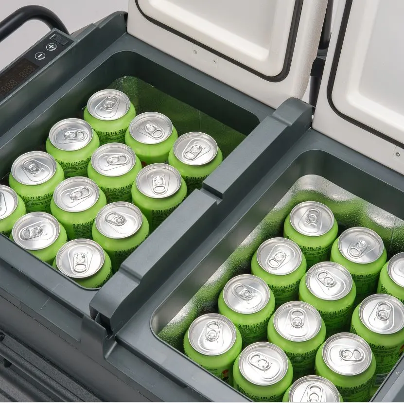 Als je kijkt naar de praktische bruikbaarheid van een ijsbox, afgezet tegen een keurige prijs, dan is de Big Fred van Eurom met een inhoud van maar liefst 35 + 23 liter sbosluut een koelbox om rekening mee te houden. Deze koel-vriesbox is namelijk uitgevoerd met twee verschillende compartimenten. Beide vakken worden aangestuurd door een eigen thermostaat. Met behulp van het handige display kun je beide koelvakken separaat aansturen en alles koel houden op een temperatuur die ligt tussen de -20 en +10 graden. Zo is deze handige koelvrieskist niet alleen te gebruiken als een koelkast, maar dus ook een handige vriezer. Bovendien zorgen de wielen en de uittrekbare trekboom ervoor dat je de Big Fred van Eurom gemakkelijk kunt verplaatsen.