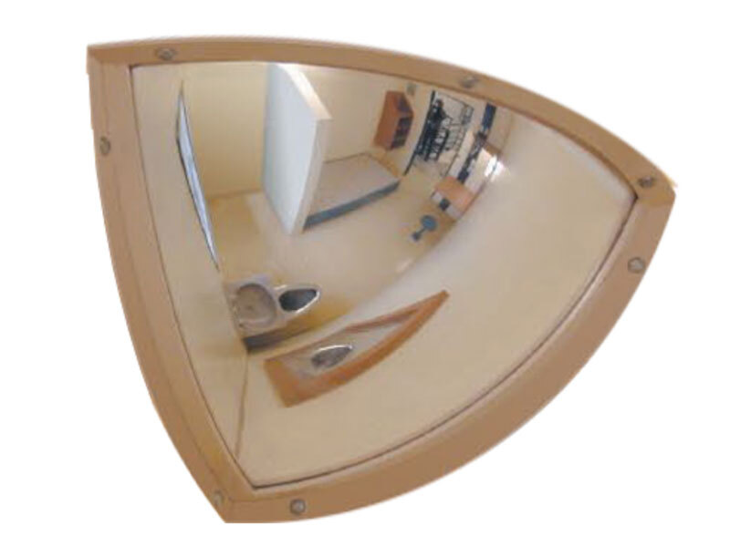 Dankzij de vorm van een achtste bol biedt deze kogelspiegel een kijkhoek van 90 graden. Dit betekent dat je van twee kanten zicht hebt op de situatie. Het voordeel van een kleine kijkhoek is dat het beeld niet flink wordt verkleind. De gebruikersafstand is dus relatief groot.