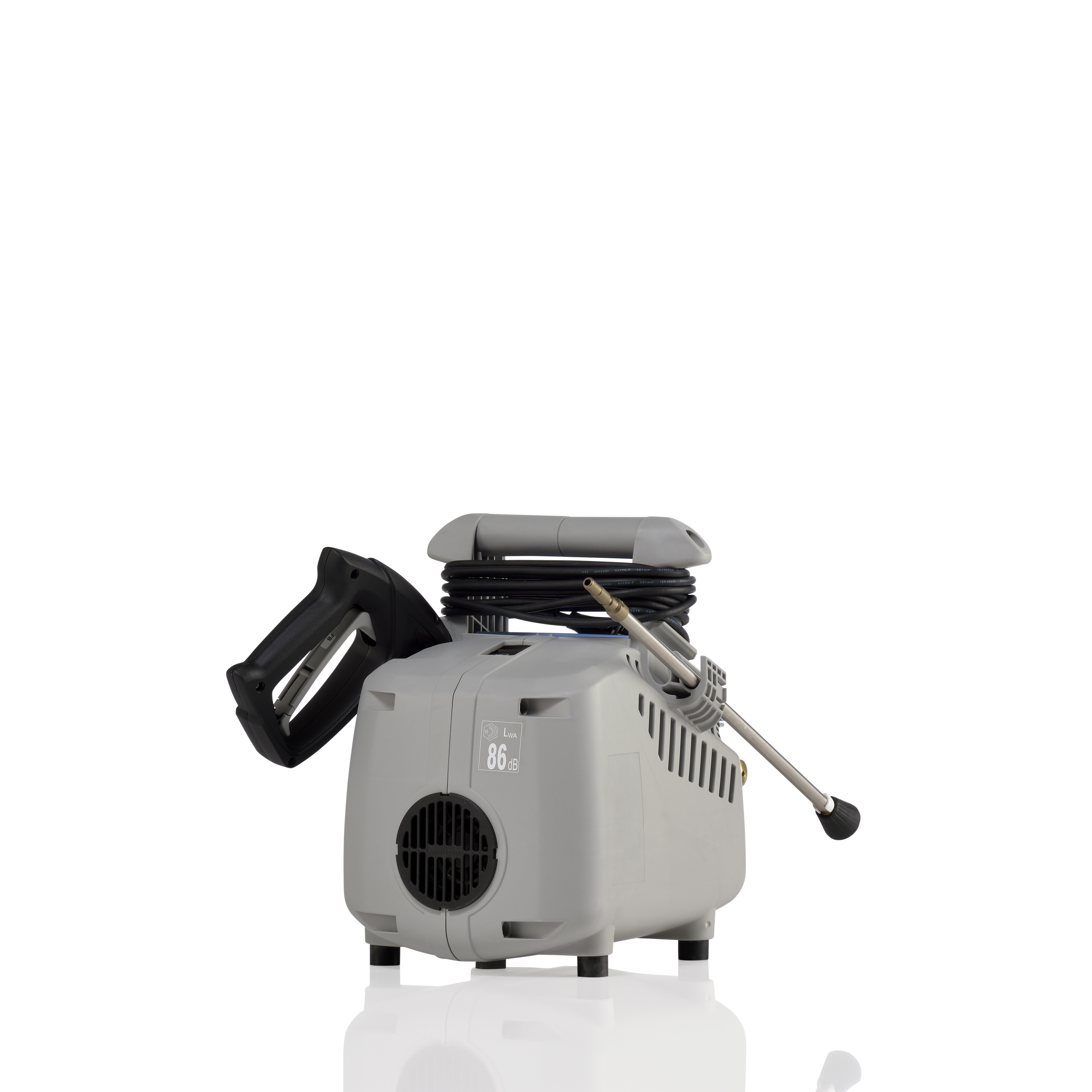 - 8 meter lange hogedrukslang met staaldraadversterking voor extra duurzaamheid en flexibiliteit tijdens het werk