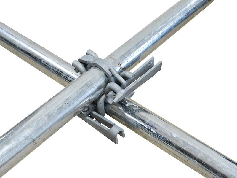 Deze steigerkoppeling van Nederlands topfabricaat is uitgevoerd met een vaste spie. Hierdoor zijn deze kruiskoppelingen in een handomdraai te monteren. Een klap met een hamer is al genoeg om de steigerbuiskoppeling zowel vast als los te slaan.