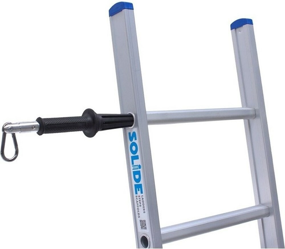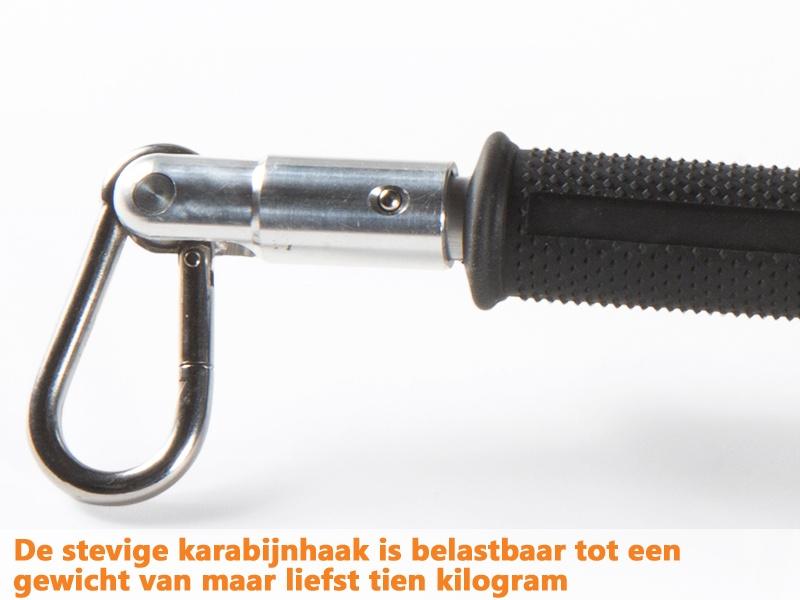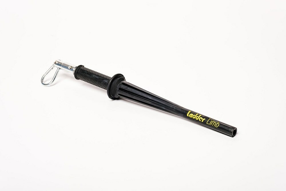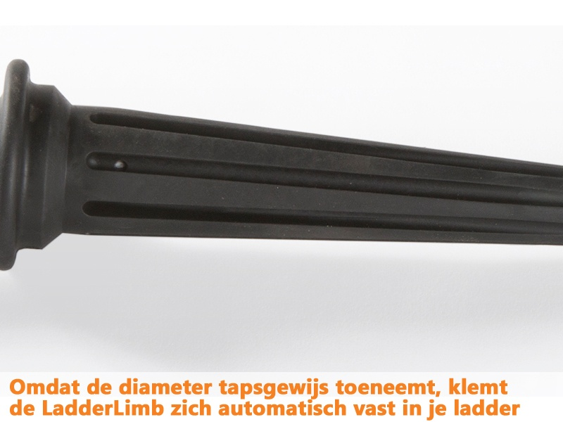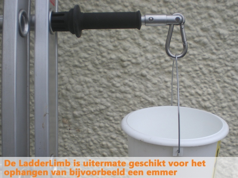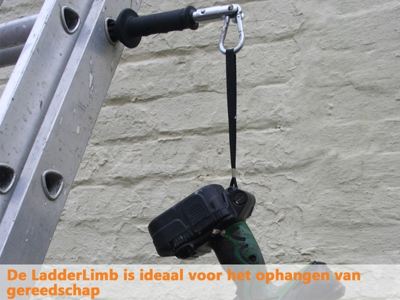 Briljante vinding Deze vinding is zowel simpel als briljant. De LadderLimb bestaat namelijk uit een rubberen steel met een lengte van ruim 46 centimeter. De dikte loopt taps toe, zodat hij zich altijd vastklemt in de sportopening van een ladder. De andere zijde is voorzien van een karabijnhaak, die je kunt belasten met een gewicht van maximaal tien kilo! Hiermee is de LadderLimb de onmisbare ladderhulp voor bijvoorbeeld monteurs, glazenwassers en schilders.