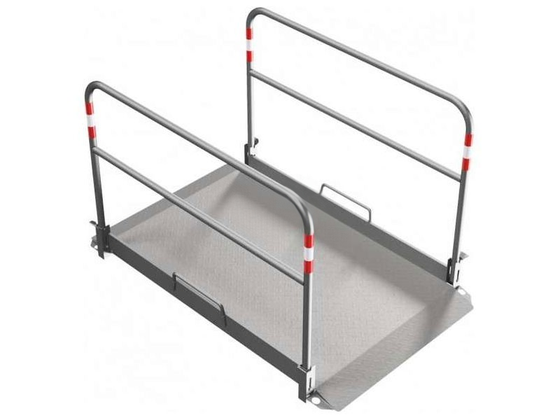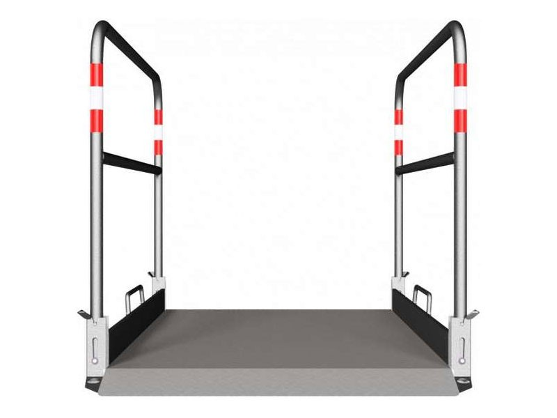 Zoals je hierboven al hebt kunnen lezen, zijn de leuningen van deze sleufbrug vervaardigd uit verzinkt staal. Deze leuningen zijn gemakkelijk in te klappen, zodat deze loopbrug maar zeer weinig ruimte inneemt tijdens het transport en de opslag. Bovendien zijn de bovenste verticale stangen van deze greppelbrug uitgevoerd met rode, reflecterende strepen. Zo valt deze sleufbrug nóg beter op in het donker. En dat is wel zo prettig.