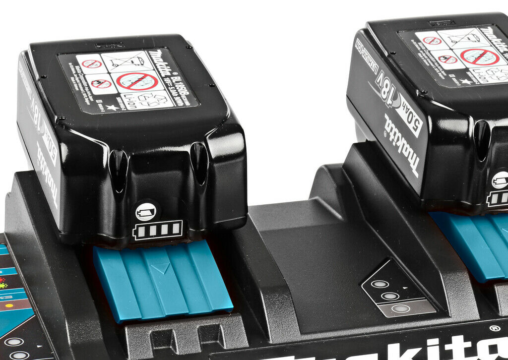 De Makita DC18RD is een compacte en krachtige duo snellader voor het gelijktijdig opladen van twee accu's. Geschikt voor Li-ion accu's van 14,4 en 18 V en NiMH schuifaccu's van 9,6 tot 18 V. Met deze lader laad je twee 4.0 Ah accu's in ongeveer 36 minuten volledig op.
