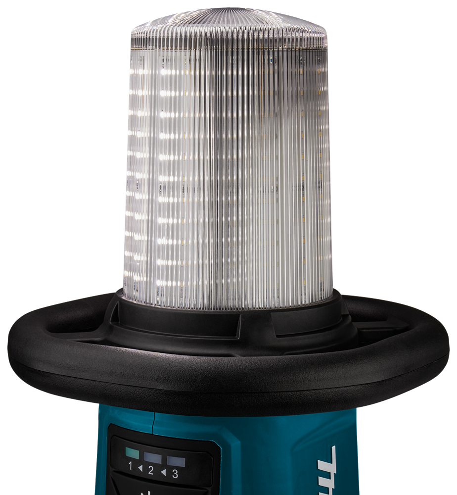 De Makita NLADML810 is een krachtige omgevingslamp die werkt op 14,4 V / 18 V LXT accu's of op 230 V netstroom. Met 202 felle leds en een vermogen van 40,4 watt zorgt deze lamp voor een gelijkmatige lichtverdeling dankzij de lichtverspreidende kap. Dit maakt de lamp uitermate geschikt voor situaties met weinig licht, zoals werken in de schemering of ’s nachts.