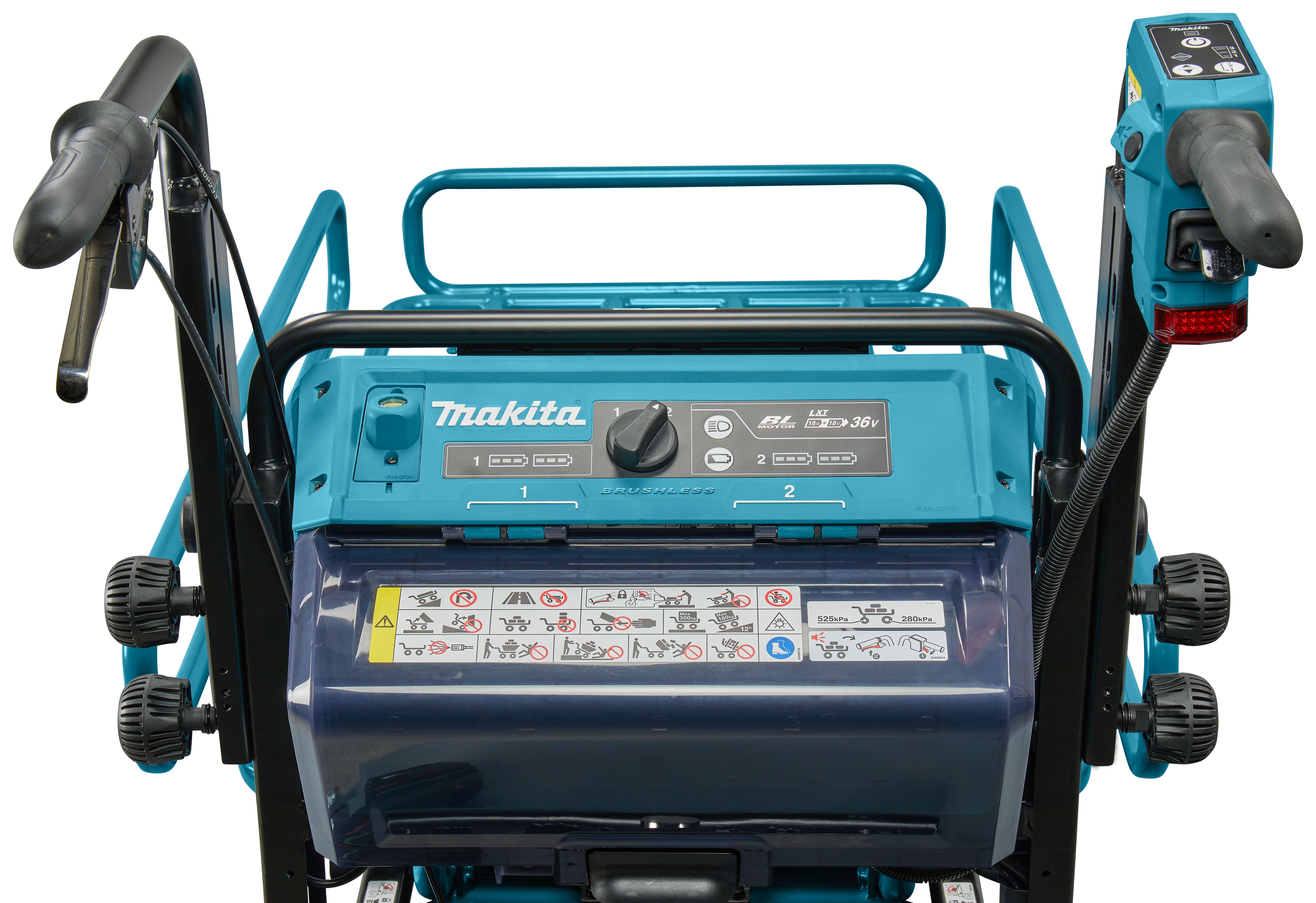 - Krachtige 2x18V motor die tot 300 kg duwt op vlakke ondergrond