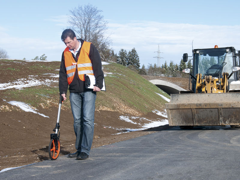 Dit meetwiel is een uiterst handig meethulpmiddel. Doordat de remknop in de pistoolgreep zit geïntegreerd, is het eenvoudig in gebruik. Daarnaast is de geleidingsstang voorzien van een slim opklapmechanisme. Hierdoor kan het hele meetwiel zeer compact worden opgevouwen.