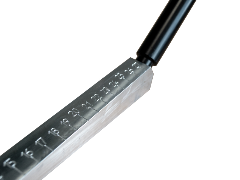 Deze meetwig is een robuust stuk meetgereedschap. Hij is vervaardigd uit stevig aluminium, met ingegraveerde maataanduiding. Bovendien is deze meetwig uitgevoerd met een ergonomisch, houten handvat.