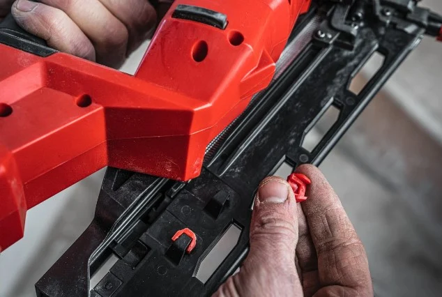 - Kleine contactbeugel maakt het mogelijk om nagels onder een scherpere hoek te schieten