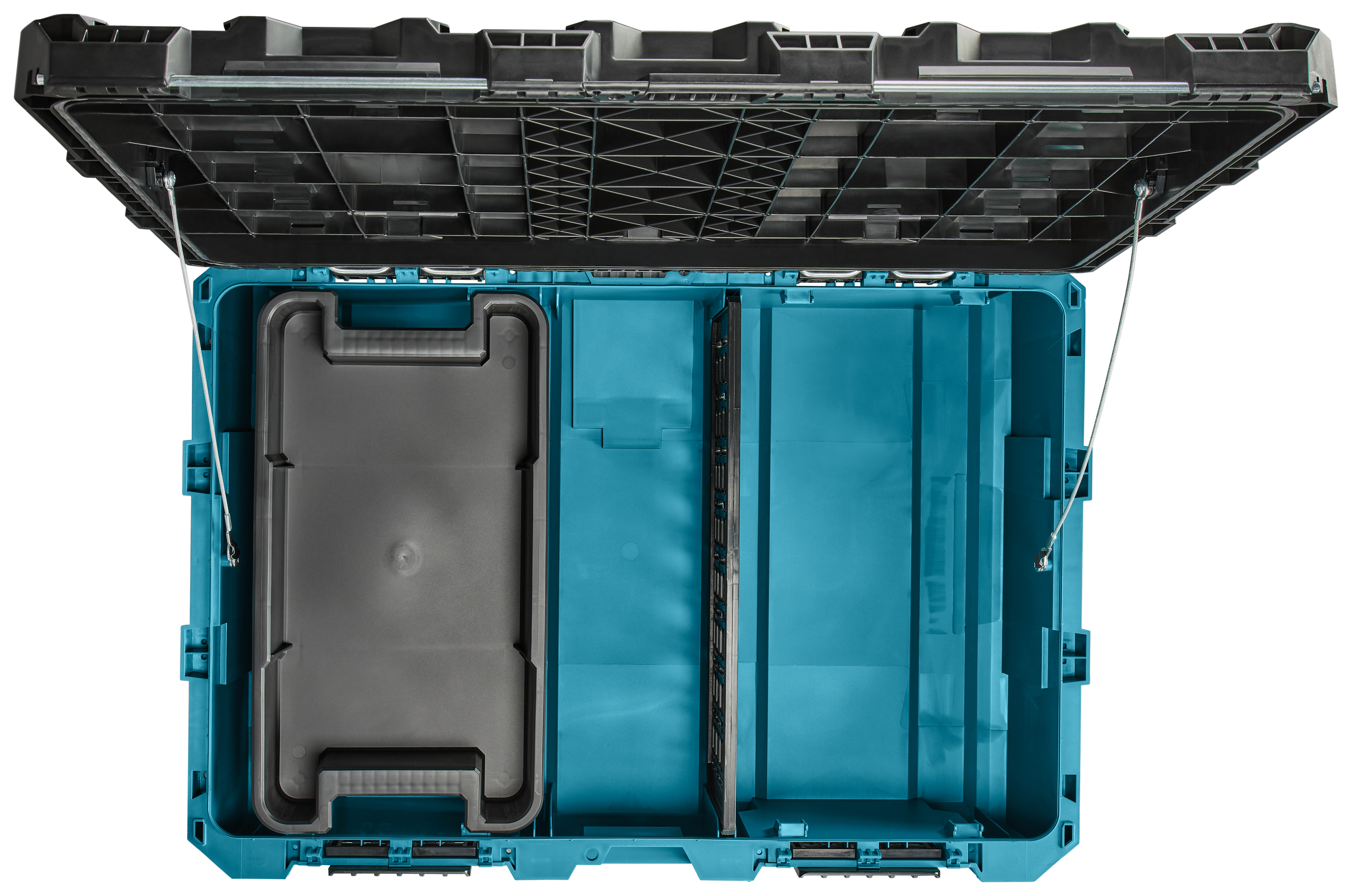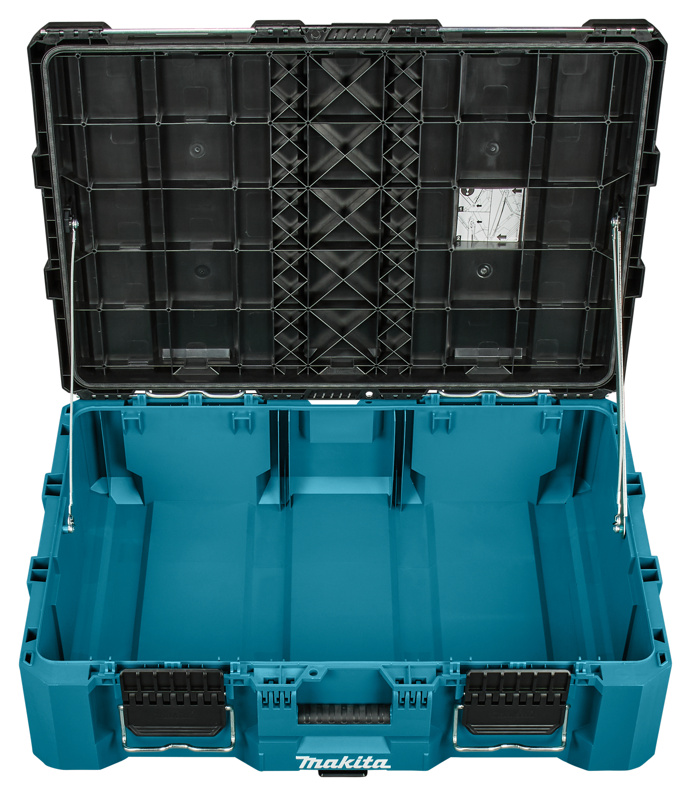 De Makita MAKTRAK Gereedschapskist Large is een robuuste en slimme opbergoplossing voor groot en zwaar gereedschap. Met een inhoud van 63 liter en een draagvermogen tot 45 kg is deze kist ideaal voor het veilig vervoeren en organiseren van lang en groot elektrisch gereedschap, accu’s en accessoires.