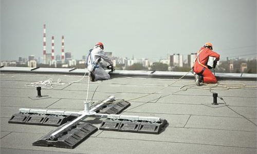 Ondanks het enorme totaalgewicht van meer dan 300 kg is dit mobiele verankeringssysteem verrassend mobiel. Het bestaat namelijk uit twaalf rubberen elementen van ieder 25,5 kg. Samen met het stalen kruis zelf kun je zo het gehele pakket gemakkelijk naar het platte dak verplaatsen. Het kruisvormige frame is in het midden uitgevoerd met een ankerpunt. Dit punt is geschikt voor maximaal twee personen tegelijkertijd.