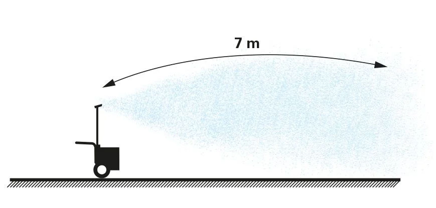 Het Trime TKS-NEBU nevelkanon is ontworpen met oog voor gemak en efficiëntie. Met een reikwijdte van 7 meter en een handmatig verstelbare sproeihoek van 20° tot 45°, kun je het vernevelde water precies richten waar het nodig is. Dit maakt het ideaal voor zowel kleine als overdekte sloopwerken en renovaties, waar stofonderdrukking essentieel is.
