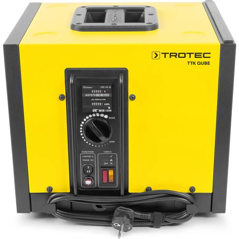 Uiteraard maakt Trotec de droging bij waterschade op zich niet gemakkelijker met de TTK Qube, maar wel vele malen gemakkelijker te hanteren. De TTKQube is een hoogwaardige, krachtige condensdroger, waarbij bij de ontwikkeling drie doelstellingen zijn gevolgd: maximale ontvochtigingscapaciteit en onderhoudsvriendelijkheid, minimale afmetingen en gewicht, zo laag mogelijke geluidsontwikkeling voor gebruik in bewoonde omgevingen. Deze ontvochtiger is vrijwel geheel kubusvormig met ribben van nog geen 40 cm. Hij legt slechts 16 kg in de schaal, dus je loopt er zo mee weg. En daar hoef je echt geen sportschoolabonnement voor te hebben.