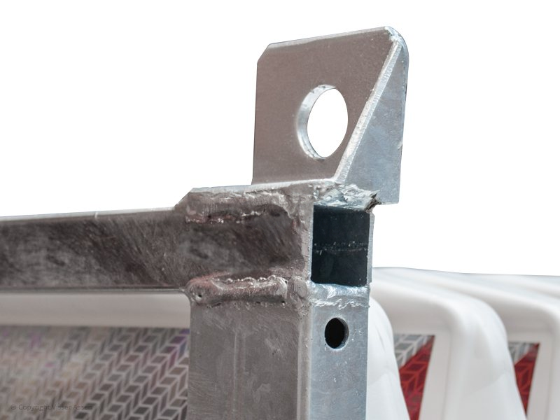 Dit stapelrek kan maar liefst vierenzestig geleidebaken opslaan. Niet alleen lijkt je terrein zo veel netter en overzichtelijker, ook het transport is een fluitje van een cent. Je steekt zo de lepels van de heftruck of een palletwagen onder dit rek en kunt zo de geleidebaken gemakkelijk en snel vervoeren. Bovendien is dit opslagrek uitgevoerd met hijsogen, zodat je het ook op of vanaf een aanhanger of vrachtauto kun hijsen met de kraan van een vrachtwagen.