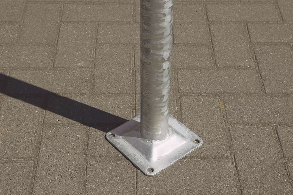 Stalen paal op voet van 60 x 60 mm. Deze paal heeft een diameter van 60 mm en een lengte van 2.5 meter. Omdat je de bouwhekken met een klem 42-60 mm aan deze paal bevestigt, heb je geen losse bouwhekvoeten meer nodig. Ideaal voor een permanente afrastering!
