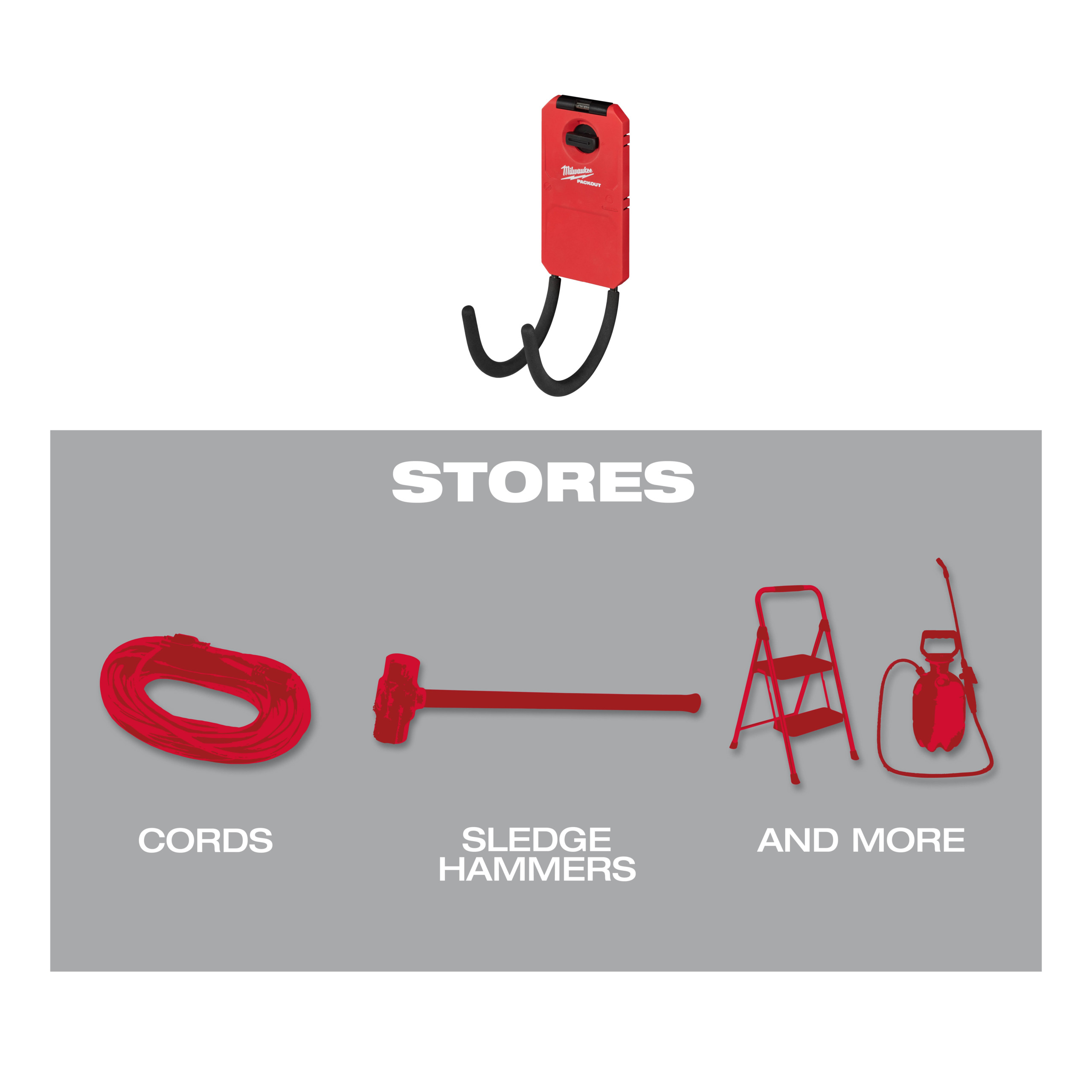 De Milwaukee PACKOUT Gebogen haak groot is een robuuste en betrouwbare oplossing voor het opbergen van zware gereedschappen en voorwerpen tot 50 kg. Deze zeer sterke stalen haak is voorzien van een duurzame coating die zowel de haak als de opgeslagen items beschermt tegen beschadigingen.