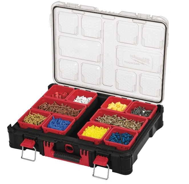 De Milwaukee PACKOUT Organiser 4082 is een robuuste en veelzijdige opbergoplossing. Gemaakt van stootvaste polymeer met een IP65-classificatie, biedt deze organiser uitstekende bescherming tegen regen en vuil. Zo blijft je materiaal altijd veilig en schoon.